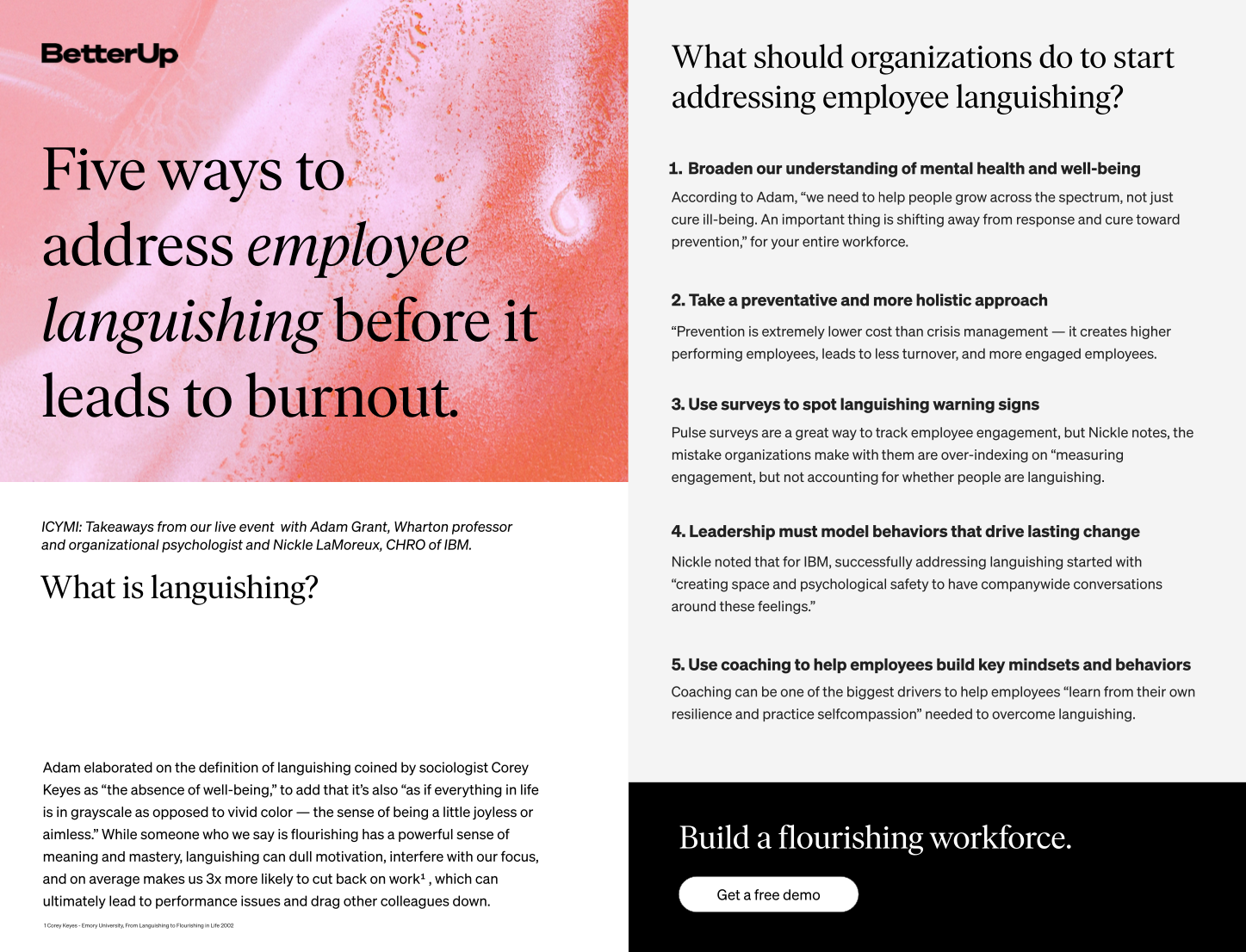 What is employee languishing – and how does it affect your employee base? Download this tip sheet to hear from Adam Grant, Wharton Professor and Organizational Psychologist and Nickle LaMoreux, CHRO of IBM, on how organizations can start addressing employee languishing today